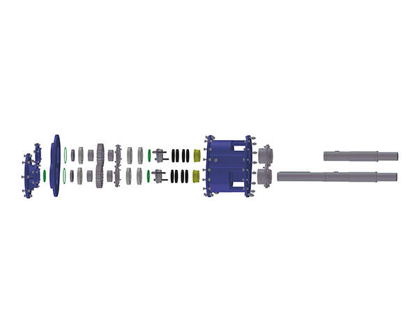 双螺旋齿轮箱经整体精密铸造后再喷砂处理,消除结构应力,加工中心整体加工,有效保证加工精度;
