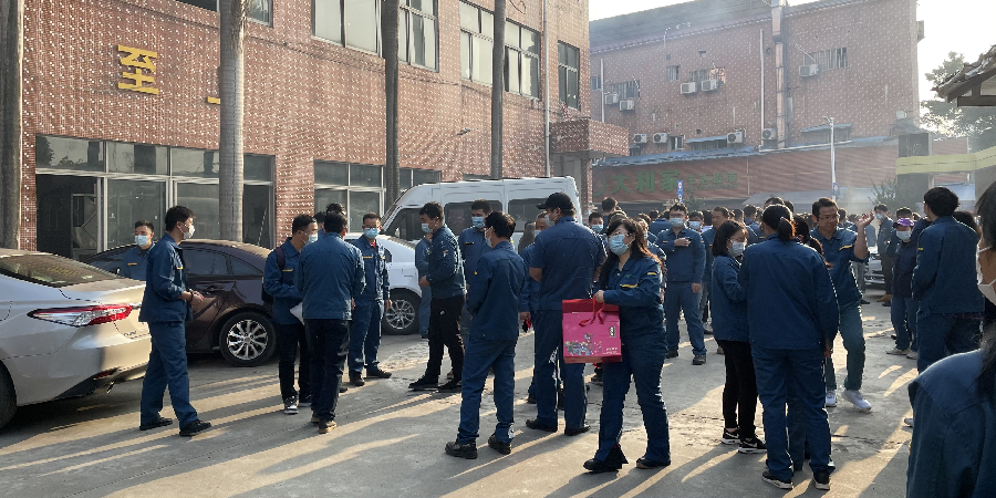 2月19日上午8点18分,晟启大沥厂区热闹喜庆的庆祝新年开工。辛丑牛年的第一个工作日,大家互相送去新春的美好祝福,用一个个象征大吉大利、好运连连的开年利是送出对彼此的新年心意。